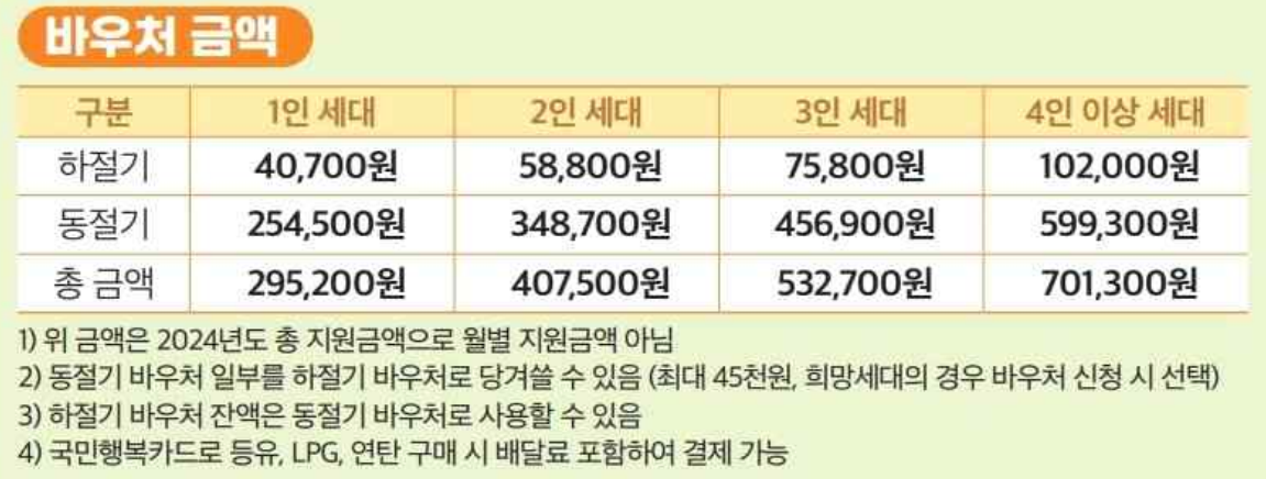 - 동절기 바우처: 10월 1일 ~ 5월 25일