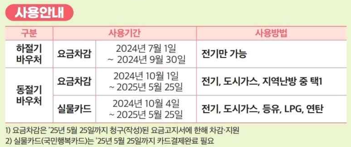 - 하절기 바우처: 7월 1일 ~ 9월 30일